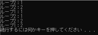 for文が2重ループ(入れ子)のサンプル