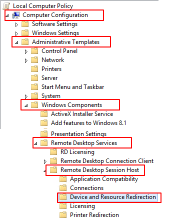 リモートデスクトップ接続先側のローカルグループポリシーで設定する方法です。