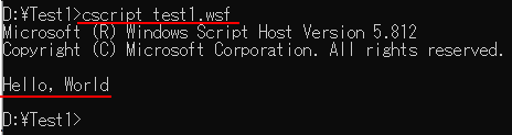 test1.wsfファイルを実行する場合、cscriptを使用します。