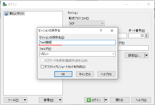 | サンプル | ローカルPCのWinSCPでリモートPCに接続する |