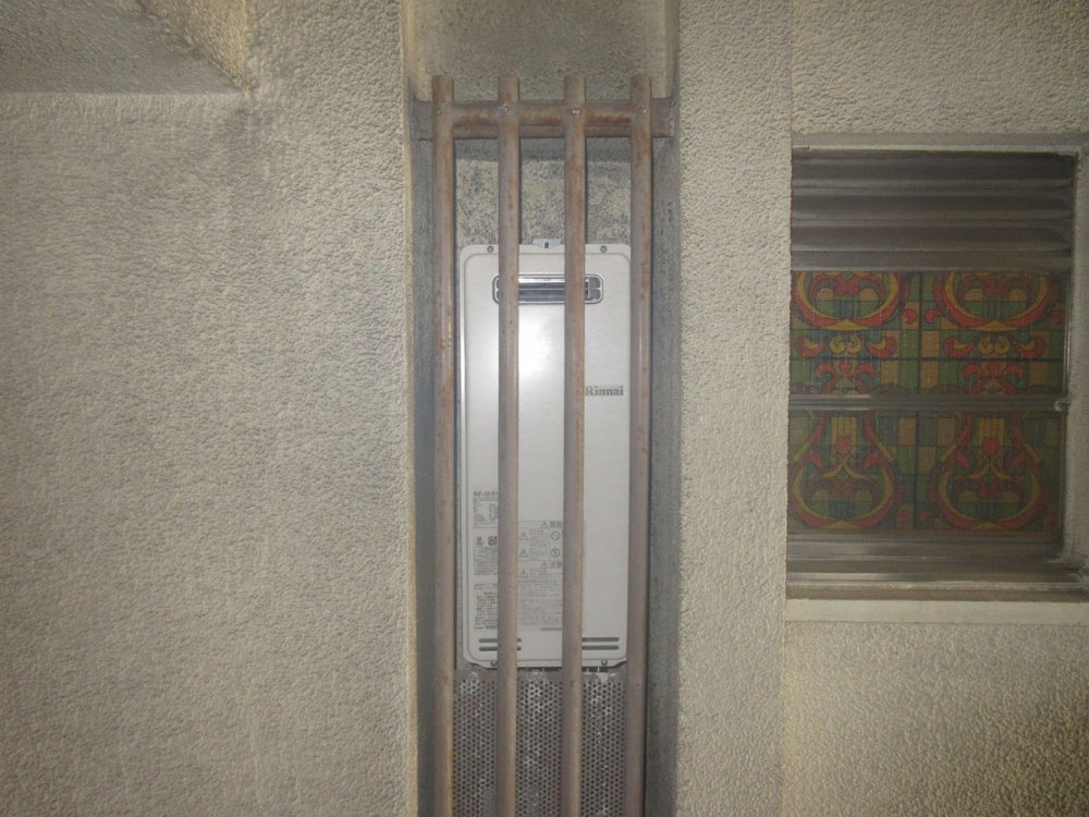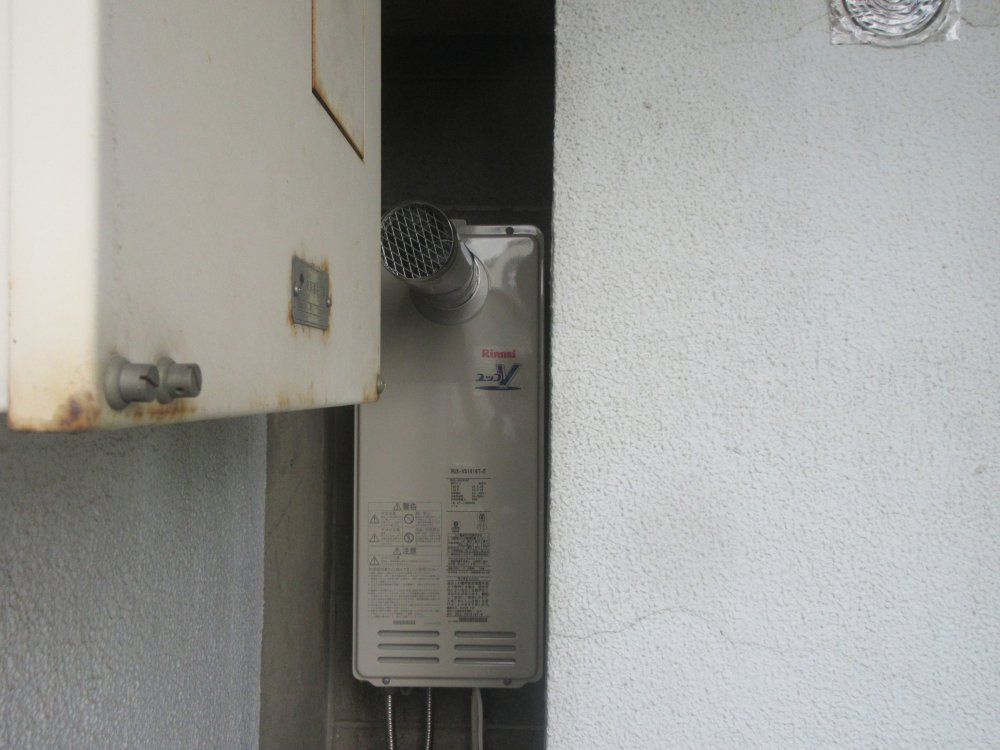 ホールインワン(壁貫通型給湯器)の取付が出来ない為、屋外排気スペースにRUF-VS1615SATを設置しました。
