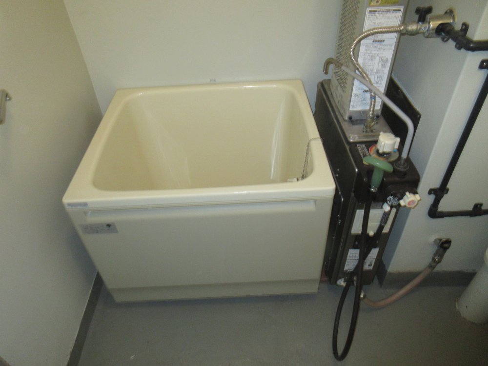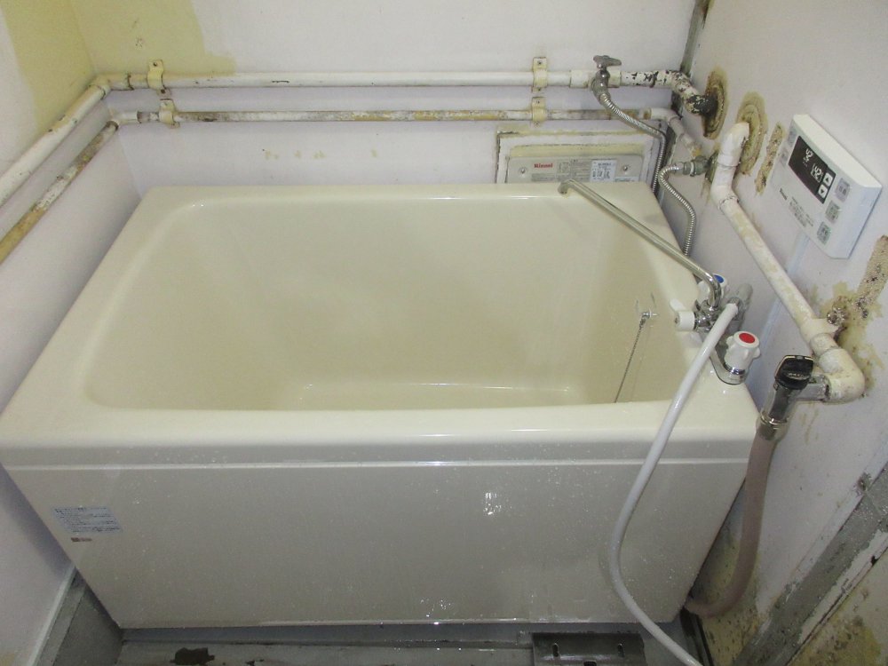 公営住宅の風呂釜取替(バランス釜 → ホールインワン浴槽と給湯器の設置)