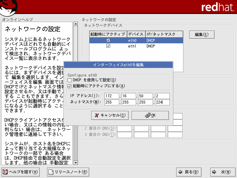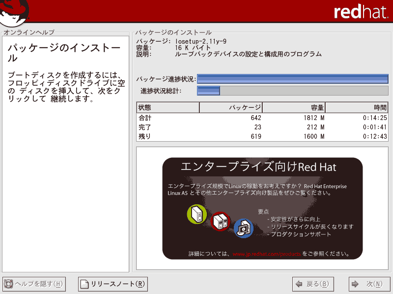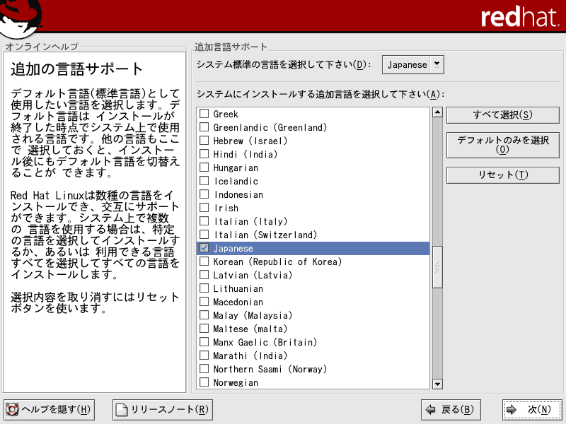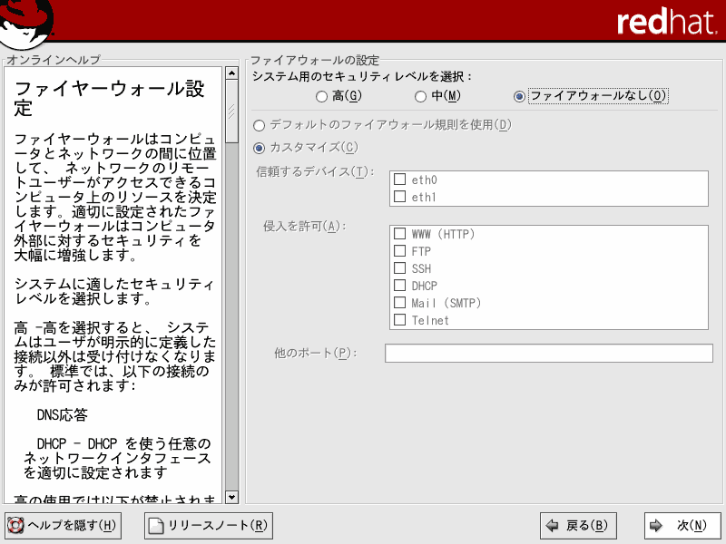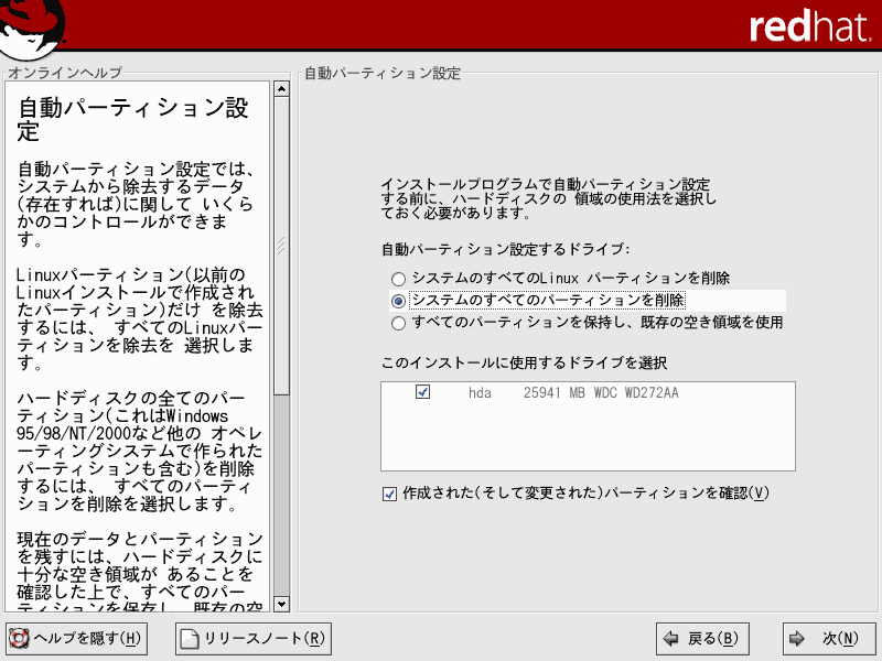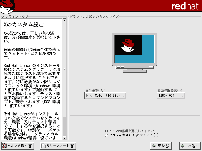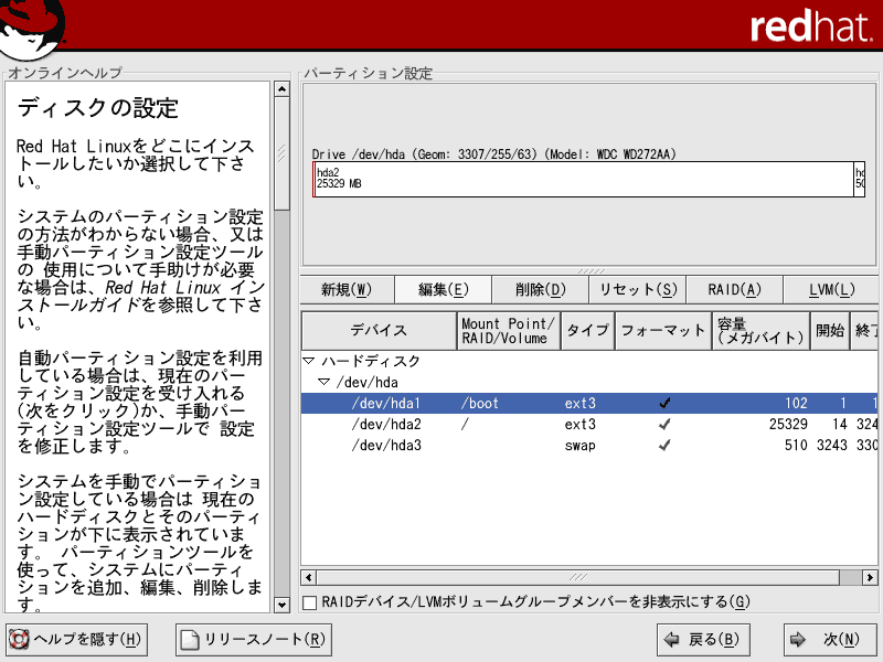 ここでは、Red Hat Linux9のインストールについて解説していきます。当ページでは、LINUX初心者を対象とした説明を行っていきます。はじめは何がなんだかわけがわからないかもしれませんが、それでも構わないと思います。特にディスクパーティションの設定は、初めての方にとっては非常にわかりづらいものです。各パーティションにどのくらいの容量をさけばいいのかは、用途や規模(企業用なのか、個人用なのか)、ディストリビューション、あるいはHDDの容量(デュアルブートをしたり等)によっても変わってくるため、頭を悩ますところです。Linux