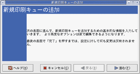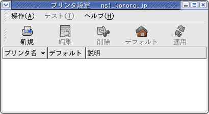 ここで、一旦、Xを起動させて、プリンタの追加を行っていきます。Xが起動したら、ターミナル上で、redhat-config-printer
