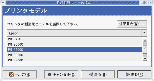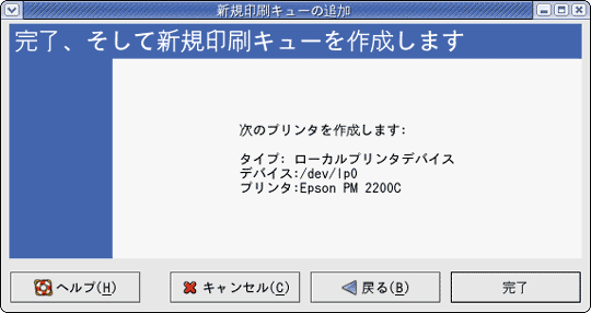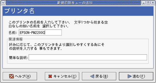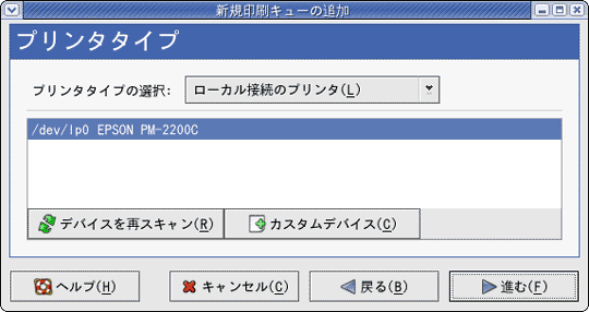 に自動的にEPSON-2200C 用の設定が書き込まれます。一から/etc/printcap を記述しなくてすむので非常に便利です。筆者の場合は、/etc/printcap.local