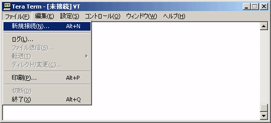 TeraTermを起動して「ファイル」→「新規接続」をクリックしてください。