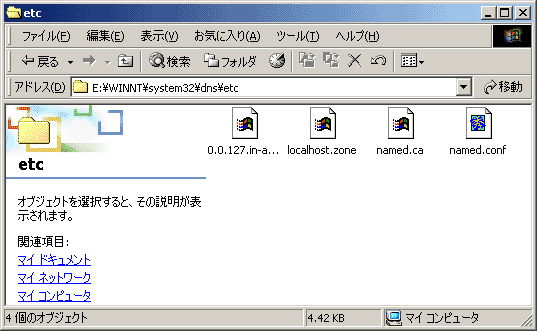 インストールしたBINDは、C:\WINNT\system32\dns\bin に格納されています。デフォルトでは、etcとbin