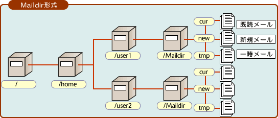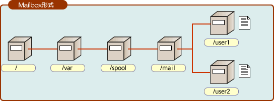 POPサーバーにqpopperを使うことを前提として、メールボックスの形式をメールスプール(Mailbox)形式にします。Mailbox形式とは、UNIXの世界で古くから使われている方式で、ユーザーごとに1つのファイルの中に複数のメールを格納します。