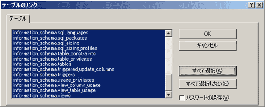 「テーブルのリンク」画面が現れたらインポートするテーブル名を選択し、「OK」をクリックします。
