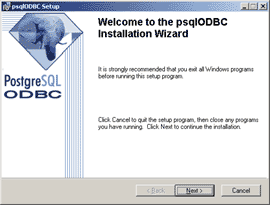 ダウンロードしたzip ファイルを解凍し、psqlodbc.msi でインストールします。インストールは至って簡単です。[