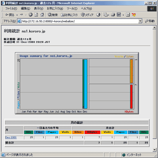 について解説していきます。Webalizer での解析結果はHTML形式で出力され、またブラウザ上から視覚的に確認することができます。また、グラフ表示機能もあります。解析できるログファイルの種類としては、Apache
