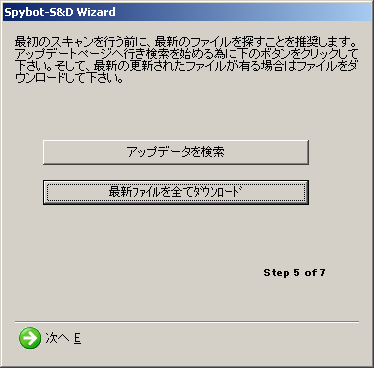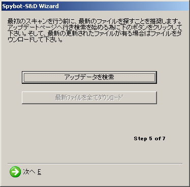 ダウンロードが完了すると、ようやくSpybot の初期画面が現れます。