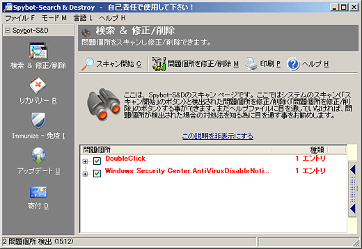■Spybot(スパイボット)でスパイウェアを駆除する