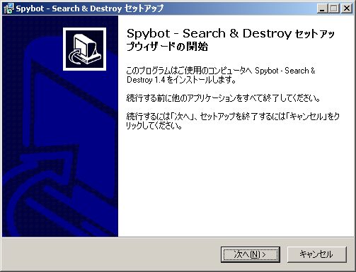 Spybot (スパイボット)のインストールを説明していきます。デフォルトで日本語表示でき、なおかつ、直感的でわかりやすいインターフェイスなので初心者にもお勧めのスパイウェア駆除ソフトです。
