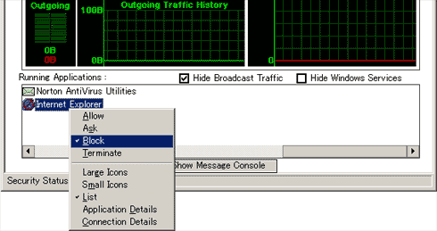 Explorer」を「Block」の設定にしておきます。これで、当然、Internet Explorerを使用してはインターネットに接続することができない状態になりました。
