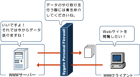ブラウザ送信許可」という名前にしましょう。次に、接続要求を受け取ったインターネット側にあるサーバーはその要求に応答し、再び、接続要求をクライアント側に対して送り返すことになります。その時に、「外部から来た要求を内部に通しても良いですよ」というルールをSPFで追加しなければWebサイトを閲覧することはできません。そこで、ブラウザの第2のルールとして「