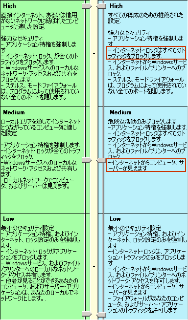 なお、ローカル側のセキュリティは、LANを構築している場合に有効な設定となっています。インターネットに接続することもなく、LAN内でのセキュリティルールを厳しくしたい場合は、ローカル側の設定を「High」にしたした方が良いでしょうが、普通に使用する分には「Medium」で十分だと思います。