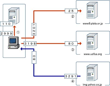 ④TCP koro:80 img.yahoo.co.jp:3291ESTABLISHED |