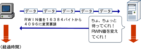 受信側はRWINの値で、受け入れるデータ量を送信側に示します。