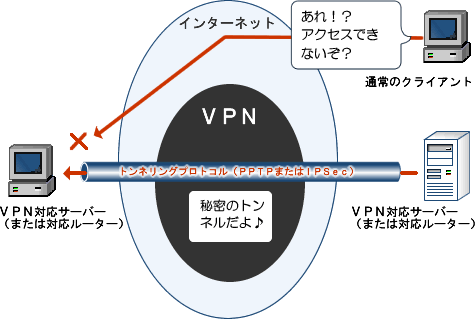 インターネットに接続されている利用者間で第3者がアクセスすることのできない閉域グループを形成したネットワークのことをVPN(Virtual