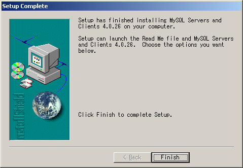 「Finish」をクリックするとMySQLのインストールは完了です。