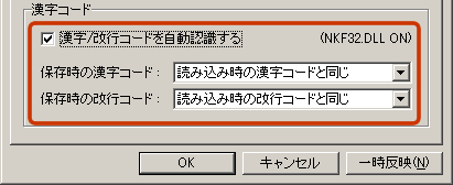 「Terapad」を使用する場合は、「ツール」→「ツールの設定」→「ウィンドウ/漢字コード」の「漢字/改行コードを自動認識する」にチェックをいれ、保存時の漢字コードと改行コードを「読み込み時の漢字コード/改行コードと同じ」を選択します。