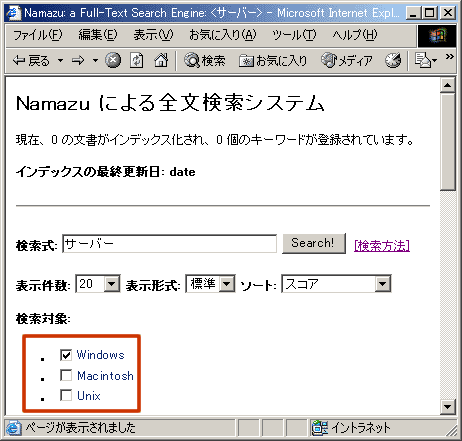 type="checkbox" name="idxname" value="windows">Windows」のように書き換え、結果的には以下のようになります。なお、このソースはあくまでサンプルとして用意されているものなので実際には、自分のWebサイト用にソースをカスタマイズしても構いません。
