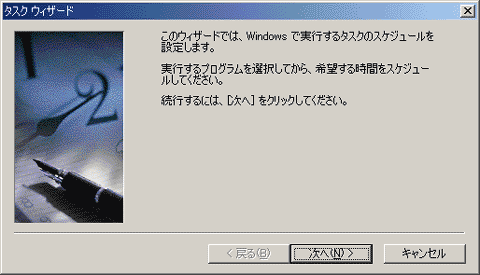 「コントロールパネル」→「タスク」→「スケジュールされたタスクの追加」をクリックし、ウィザードに従って設定を進めていきます。なお、ウィザードを使用せず、「新規」→「タスク」から直接、編集をしていっても構いません。