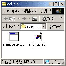 次に、上記で編集した「namazurc」ファイルをWWWサーバーで指定してある「cgi-bin」ディレクトリへ「