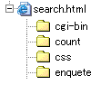 まず、確認のために最初は簡単なフォームを作成して試してみます。以下のソースをコピー&ペーストして「cgi-bin」ディレクトリより1階層上のディレクトリに「search.html」というファイル名で保存します。ファイル名は自由につけて結構です。