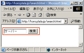 「http://XXX/searh.html」と入力して現れたフォーム画面で適当な単語を入力し、「検索」をクリックします。