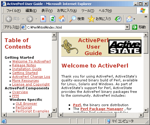 hello.pl」と入力しエンターキーを押します。以下のように「Hello!Active Perl」のように表示されたらPerlは正常に動作しています。あとは、皆さん各自でCGIプログラムをネットで探すなり、自作するなりご自由にしてください。