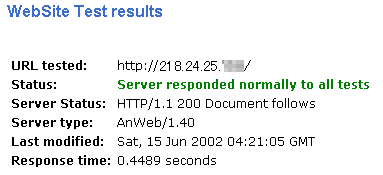 normally to all tests」(サーバーは全てのテストに正常に応答しました)と表示されれば、外部(WAN側)からあなたのWebサイトが正常に閲覧できる状態にあります。