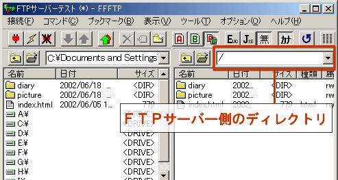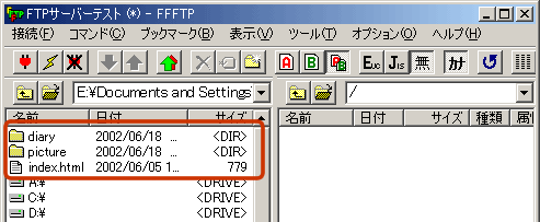FTPとWar FTPでは多少、表示のされ方が異なりますので比較してみてください。