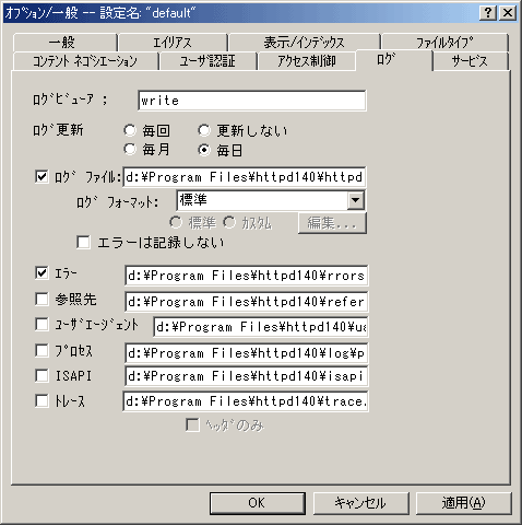 「標準」にしておくとApacheと互換性のあるフォーマットに記録されるようになり、一般に出回っているアクセスログ解析ソフトでの解析が可能となります。