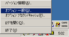 次にタスクトレイに現れたAN HTTPDのアイコンを右クリックして「オプション一般」をクリックしてください。