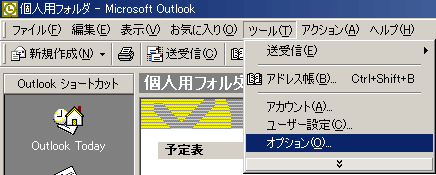 「ツール」→「オプション」