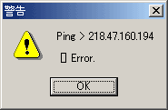 また、以下のようなダイアログが出た場合は、pingを実行した際に、タイムアウト(時間切れ)になってしまったということなので、もう一度テストを実行してみてください。以上でDiCEの設定は完了です。