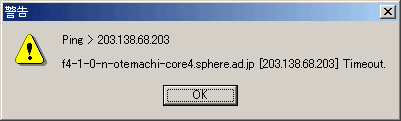 f4-1-0-n-otemachi-core4.XXX.ad.jp [203.138.68.203]」となります。つまり、「f4-1-0-n-otemachi-core4XXX.ad.jp」のIPアドレス「