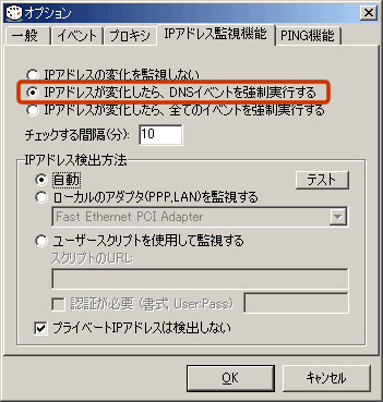 DNSの管理です。前項までの説明だと、IPアドレスが変わるたびに、いちいち、IPアドレスを調べてから、DynDNSのWebサイトでログインして、IPアドレス変更の申請をし直すという過程を踏まなければならず、これではちょっと煩雑さを拭えません。