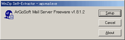 「agsmail.exe」を実行してください。以下のような画面が現れたら、「Setup」をクリックしてください。