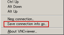 最後に、現在、接続しているコネクションに対して、次回、簡単にログインできるようにショートカットを作成しておきます。TightVNCのタイトルバー(青い部分)を右クリックして現れるコンテキストメニューで「