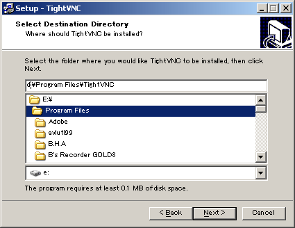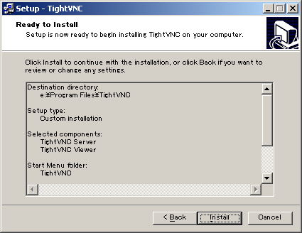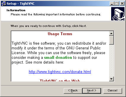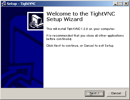 TightVNCをインストールしておく必要があります。ダウンロードしてきた tightvnc-1.2.9-setup.exe