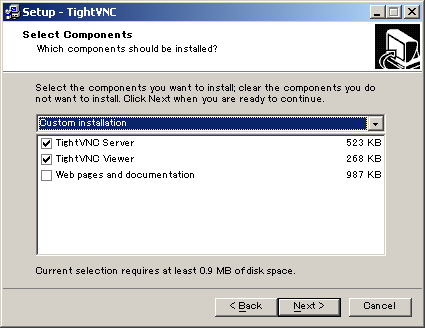 Server」と「VNC Viewer」のチェックをつけてインストールしてください。 |