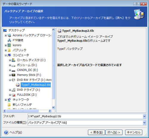 Imageの仕様だろうからどうしようもないことだが、非常に不便だなと感じるところです。バックアップイメージが1枚の場合は、ディスク交換の手間がないのでもっと簡単に復元することができます。