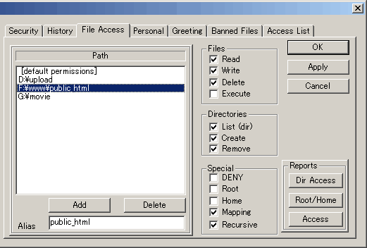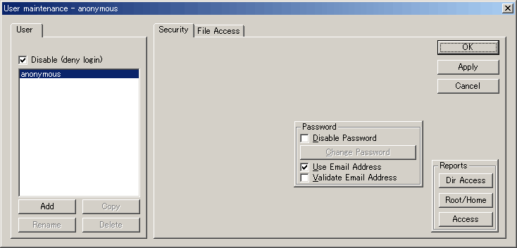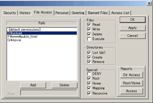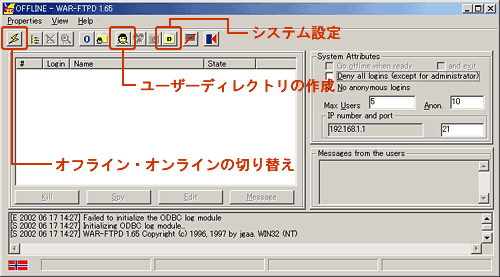 FTPの「Simple」モードを対象に解説をしていきます。War FTPは非常に多機能なFTPサーバーソフトなので全てを解説しようとしたら、ひとつのWebページが作成できてしまうほどなので、当サイトではFTPサーバーを利用するにあたっての基本的な事に絞って解説していきます。あとは各自でいろいろ設定をいじって研究してください。