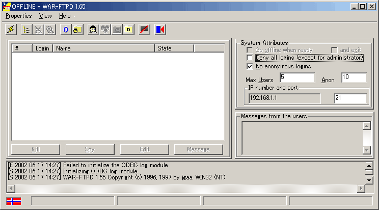 War FTPのインストール[ Ver.1.82 ]