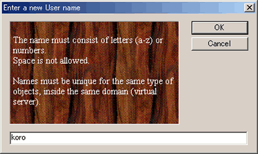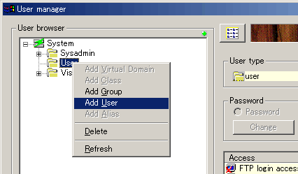左のペイン(User browser)から、先ほど作成したユーザ名をクリックし、右側のペインで下図に示した「