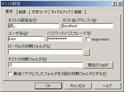 point」には、エイリアス(仮想パス)名を入力します。実際に、public_html ディレクトリが存在している必要はなく、ユーザkoro