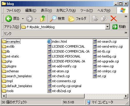 以後、このディレクトリ(F:\public_html\blog)を「MTディレクトリ」として説明していきます。